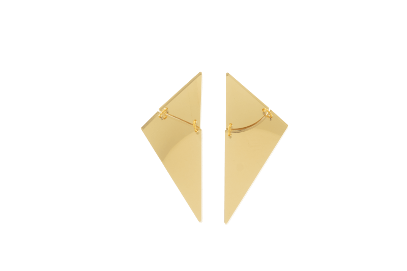Los pendientes Glenn dorados son dos triángulos formados por dos piezas que realzarán tus facciones y darán ese toque de originalidad a tu conjunto.